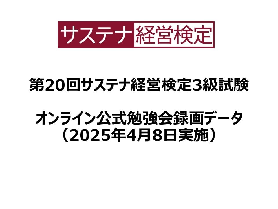 ※2025年4月8日に終了した第20回サステナ経営検定3級試験のオンライン公式勉強会の録画データです。